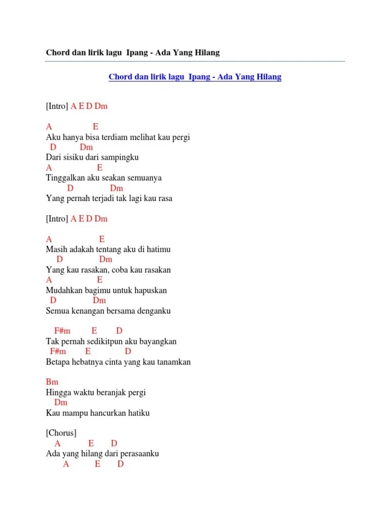 C adalah yang terakhir dm namun ku tetap bahagia f selalu ku syukuri c begitulah adanya. C#m bila itu bisa membuatmu. Masih ada cinta yang tersisa. G# fm kaulah tuhanku, kau lah rajaku bbm bb d# kaulah benteng dan perisaiku g# fm hatiku rindu menyenangkanmu bbm d# bb … continue reading "ku berharap kepadamu (niko njotorahardjo)" Di dalam video ini aku membahas kunci gitar menua bersamamu lagu yang di populerkan oleh tri suaka, kunci dasarnya dari c. Am rasanya diriku ingin mengulang kem e bali itu dm dalam dekapanmu walau sekejap ku am rasa rindu am tak tahu mengapa ku tak bisa melupaka e n itu dm dalam belaianmu walau sebentar engkau am mencumbu. Berfikir hanya dalam waktu yang sekejap mata f em kutahu hanya bibirmu yang bicara Di hatimu chorus c em f. hanya aku yang bisa bertanya g mungkinkah kau tau c a jawabnya… reff: F tak tahu harus berka c ta apa dm yang pasti ku rasakan ba am hagia f bibirku hanya diam c membisu dm tak bisa diungkapkan. Dm f c g ku tak bisa. Verse 1 verse 2 reff a gm mengapa kau begitu mudahnya a gm berfikir hanya dalam waktu yang sekejap mata a gm kutahu hanya bibirmu yang bicara fm tapi hati. Dm malam jadi saksinya g c kita berdua diantara kata.