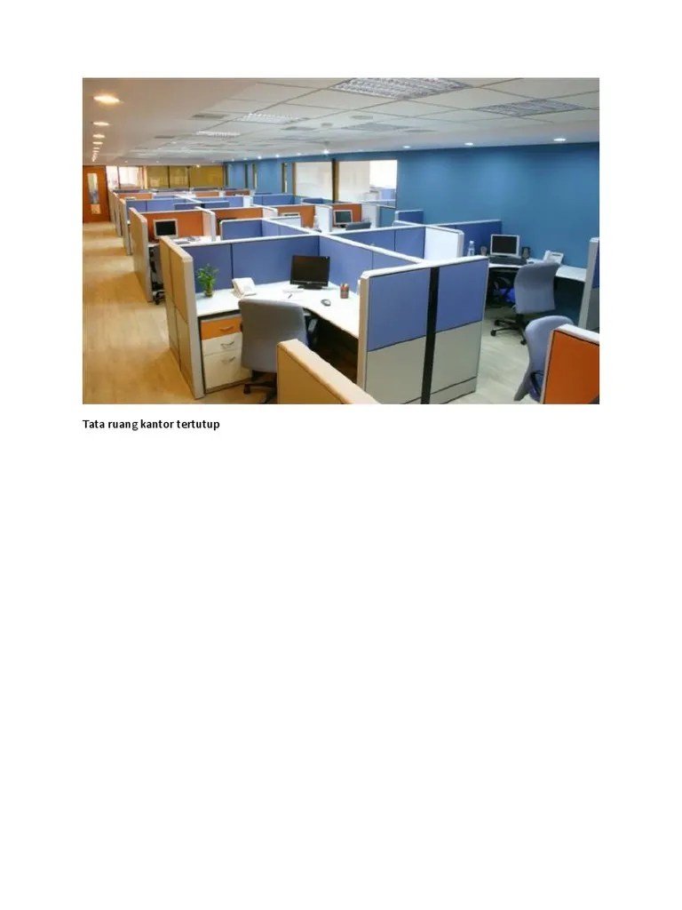 Dengan menggunakan sekat maka privasi dalam pekerjaan akan mudah tercapai sehingga pekerjaan yang dilakukan bisa lebih tenang dan konsentrasi yang maksimal. tata ruang kantor tertutup 2. Salah satu tata ruang kantor yang paling populer saat ini adalah terbuka. Kelemahan dari tata ruang kantor tertutup adalah. Kelebihan ruang kantor terbuka bagi pimpinan adalah mudahnya pengawasan terhadap kinerja para karyawan.